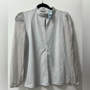 Ann Taylor Manhattan Mist Petite Mixed Material keyhole mock neck blouse
