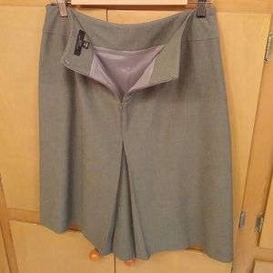 Ann Taylor Gray Skirt.37% Rayon, 37% Polyester, 24% wool 2% spandex. Lining 94% polyester, 6% expanded. Lenght 24" 1\2 long. Dry cleaning. 8 petite.