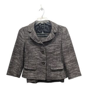 Ann Taylor Gray & White Boucle Wool Blend Blazer & Mini Skirt Suit Set, 8/8P