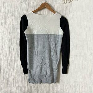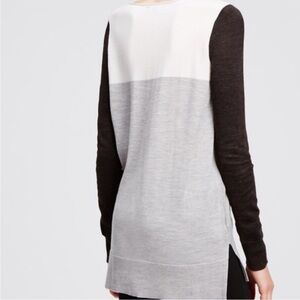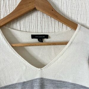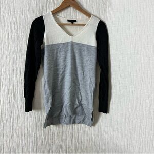 Ann Taylor Gray white charcoal color block v-neck merino wool sweater size XS