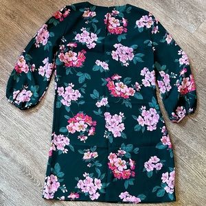 Ann Taylor Green Floral Lantern Sleeve Dress - 0