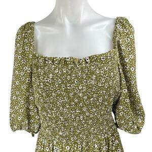 Ann Taylor Green Floral Short Sleeve Smocked Ruffle Tiered Maxi A-Line Dress 8