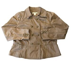 Ann Taylor Olive Green Military Style Double Breasted Lightweight Jacket