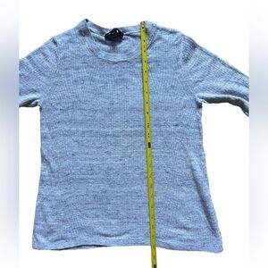 Women's Small Ann Taylor Grey 3/4 Sleeve Sweater. Round neckline. Material is lightweight; in between heavy t-shirt and sweater material. Some wear, but the style is a washed, worn, ribbed look. Can be work casually or professionally to work.