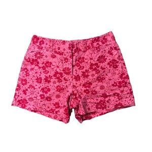 Ann Taylor Hawaiian Floral Chino Shorts 00s Red/Pink Summer Tropical Vac…