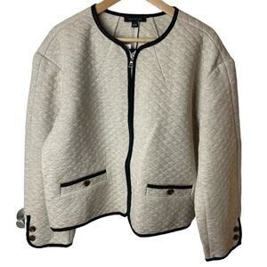 Ann Taylor Heather Beige Quilted Full Zip Jacket Women's Size L NWT