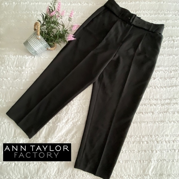 Ann Taylor High Rise The Belted Ankle Black Pants