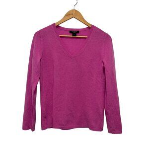 Ann Taylor Hot Pink 100% Cashmere V-Neck Pullover Sweater Women's Size M