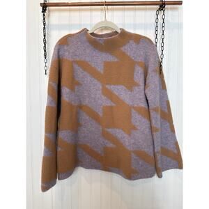 Ann Taylor Houndstooth Jacquard Mock Neck Sweater Brown Pullover Womens Size XS