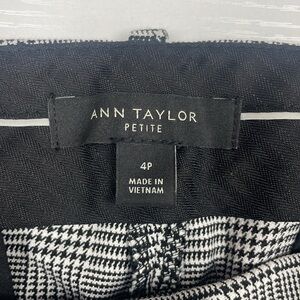 Ann Taylor Houndstooth Plaid Mid-Rise Trouser Ankle Pant Preppy Black 4 Petite