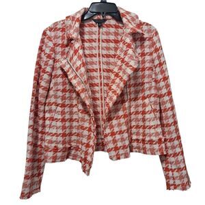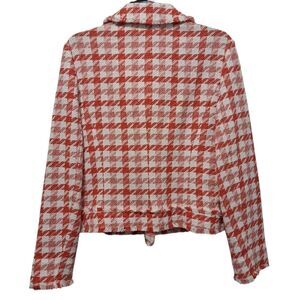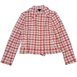 Ann Taylor Houndstooth Tweed Checkered Moto Woven Fall Chic Blazer Jacket Medium Red/White