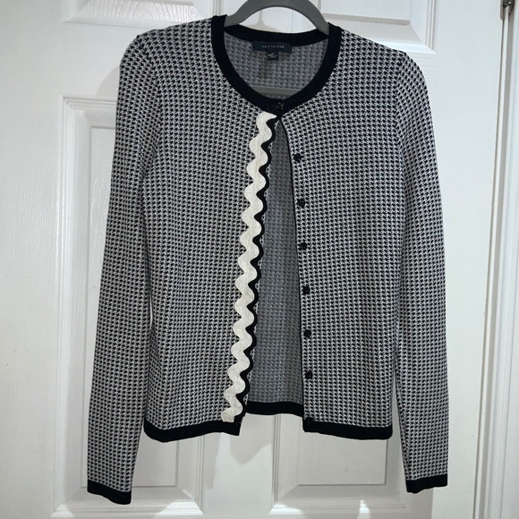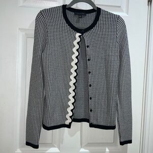 Ann Taylor Houndstooth button front Cardigan Sweater sz XS rickrack trim
