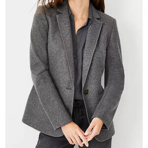 Ann Taylor Hutton Blazer Size 4 Gray Brushed Wool Ribbed Knit Classic Chic