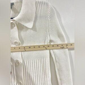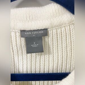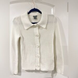 Ann Taylor Ivory Cable Knit Cotton Cardigan S Collared Button Down Sweater