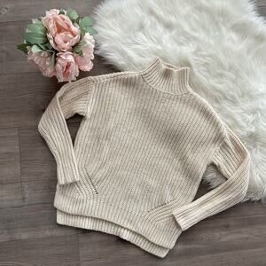 Ann Taylor Ivory Cream Ribbed Wool Thick Knit Turtleneck Sweater XS