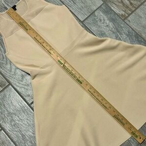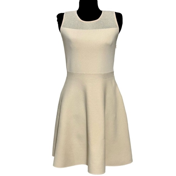 Ann Taylor Ivory Knit Sheer Mesh Yoke Sleeveless A-line Fit & Flare Dress size M