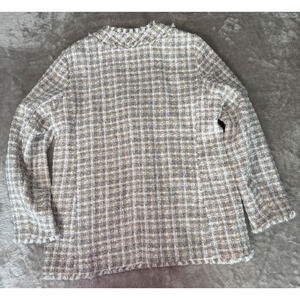Ann Taylor Ivory Multicolor Plaid Tweed Fringe Jacket Collarless Blazer Size 14 Excellent condition - see pictures for measurements