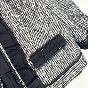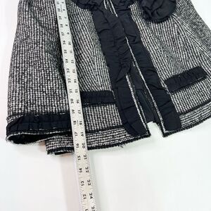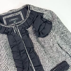 Ann Taylor Jacket Blazer Womens 12 Tweed Ruffle Floral Wool Black Gray
