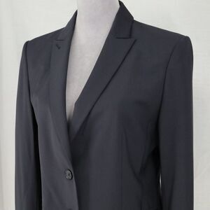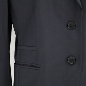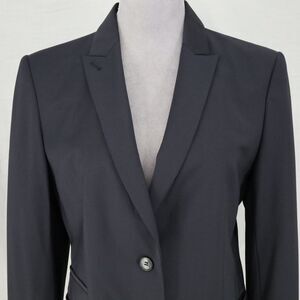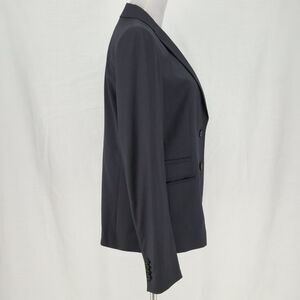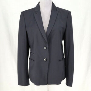 Ann Taylor Jacket Women's 10 Dark Navy Blue Black Wool Blend Lined Blazer Pockets Career Office