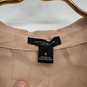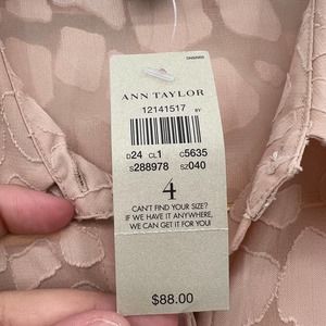 Ann Taylor Jacquard Leopard Tan Satin Button Up Long Sleeve Size 4 NWT