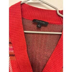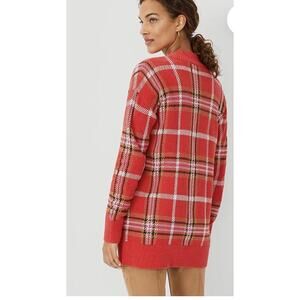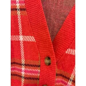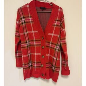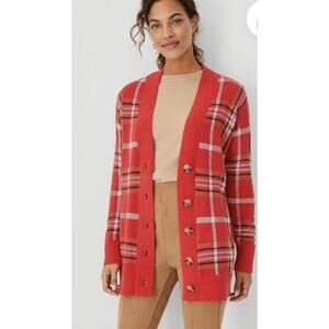 Ann Taylor Jacquard Plaid Boyfriend Cardigan Jubilee Red Size Small