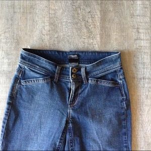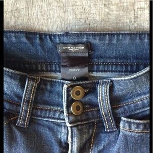 Ann Taylor Curvy Jeans Size 0. Pre-owned. 98% Cotton, 2% Spandex. Waist: 13.75" Inseam: 32" Rise: 7.5"
