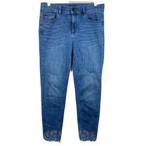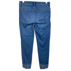 Ann Taylor Jeans Womens Sz 6 Blue Floral Embroidered Ankle Skinny Cotton Stretch