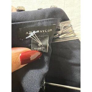 This elegant Ann Taylor sheath dress features a jeweled Peter Pan collar, perfect for cocktail parties or special events. Designed in a flattering silhouette, it offers a sophisticated look for any occasion.