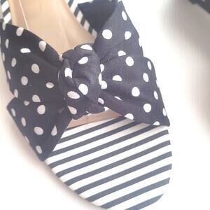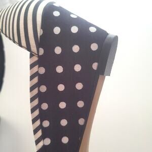 Polka dots and strips design. This stylish wedge heel, with knot-topped adds a little flare to your classic black outfits.