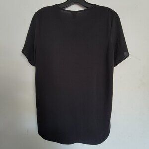 Ann Taylor Keyhole Front Black Short Sleeve Blouse Top Shirt Silky Smooth Flowy
