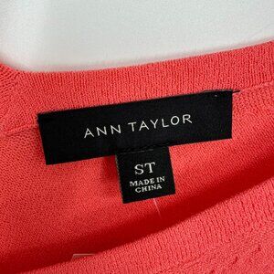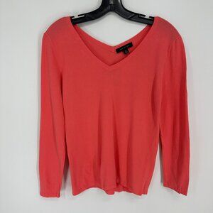 Ann Taylor Knit Top ST Double V Neck Back 3/4 Sleeves Lightweight Coral Work NWT