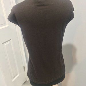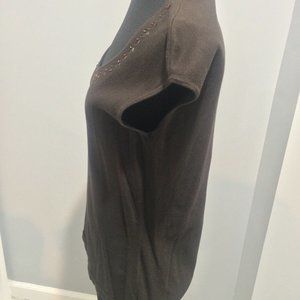 Really nice AnnTaylor top; brown size L, scoopneck neckline. At the neckline there are metallic sequins and bugel beads to give it nice added sparkle!