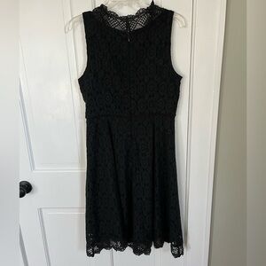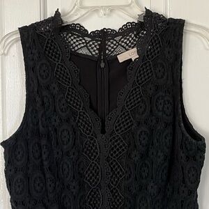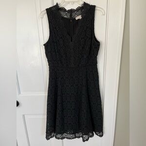 Ann Taylor Loft Black Lace Overlay Fit & Flare Sleeveless V Neck Dress