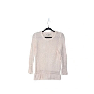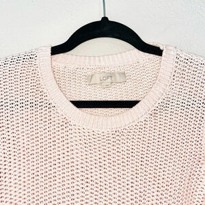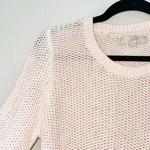 Ann Taylor LOFT light pink knitted sweater. In excellent condition! Crew neckline. Long sleeves. Straight bottom hemline. Open stitch knitting. Reverse stitching along the bottom hemline & on the sleeves. Slightly sheer. Light pink color. Size large.