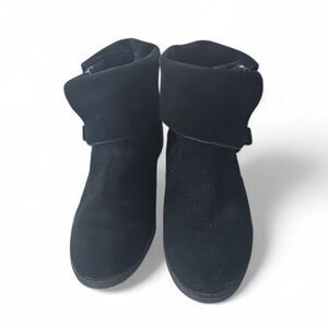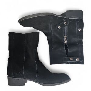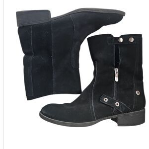 Ann Taylor LOFT 100% Leather Suede Ankle Luxe Boots Women’s 8.5 Black Moto Utility