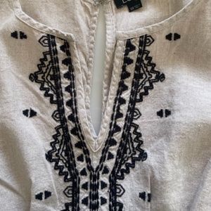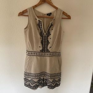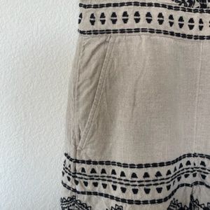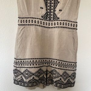 Ann Taylor LOFT | 100% Linen Embroidered Sleeveless Beige Romper | Size 00 XXS