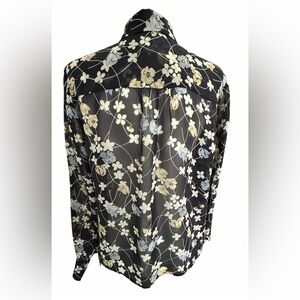 Ann Taylor LOFT 100% Silk Blouse Size 14 Navy Floral Semi Sheer Button Front Top