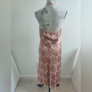 Ann Taylor LOFT 100% Silk semi-formal wedding guest pink halter maxi dress_10