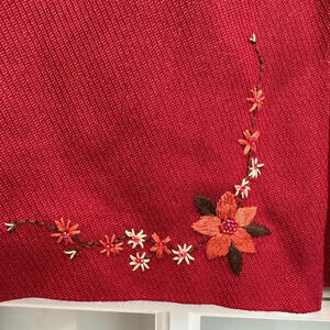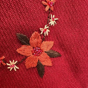 Ann Taylor LOFT 100% Wool Burgundy Floral Embroidered Beaded Pencil Skirt Size 8