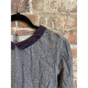 Ann Taylor LOFT - 3/4 Sleeve Grey Sweater with Purple Floral Faux Layer Collare