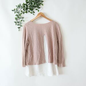 Ann Taylor LOFT 3/4 Sleeve Layered Shimmer Tan & Cream Top S Small
