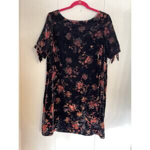 Ann Taylor LOFT 90’s Romantic Floral Velvet Burnout Split Sleeve Shift Dress L