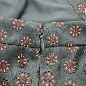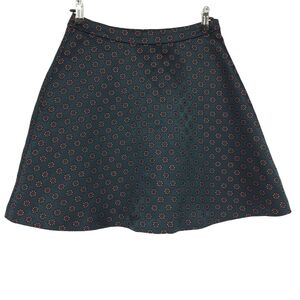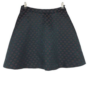 Ann Taylor LOFT A Line Skirt Green Floral Jacquard Zip Flare Petite 4P