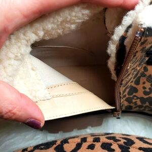 Ann Taylor LOFT Animal Print Shearling Lined Lace Up Utility Combat Hike