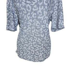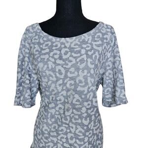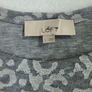 Ann Taylor LOFT Animal Print Short Sleeve Sheer Gray Knit Top Blouse Size Large
