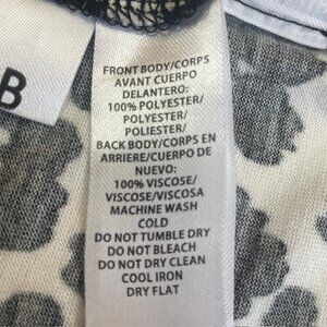 Ann Taylor LOFT Animal Print Tie-Neck Sleeveless Elastic Hem Blouse • Black and white animal print • V-neckline with tie-front detail • Sleeveless • Elasticized bottom hem • 100% Polyester • Size XS • In good preowned condition - no stains or flaws Approximate measurements laying flat: ◘ Width, armpit to armpit 19.5" ◘ Length, top of shoulder to bottom of hem 24.5"