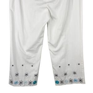 Ann Taylor LOFT Ann Pants Cropped 10 White Embroidered Flowers