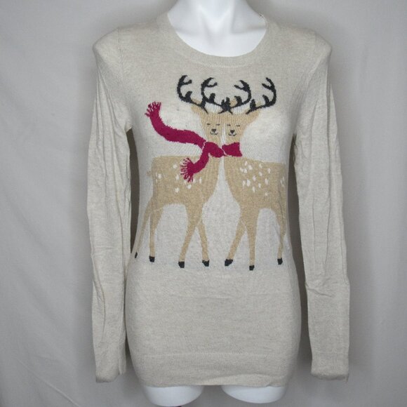 Ann Taylor LOFT Beige Cream Reindeer Crew Neck Sweater Women's S Small