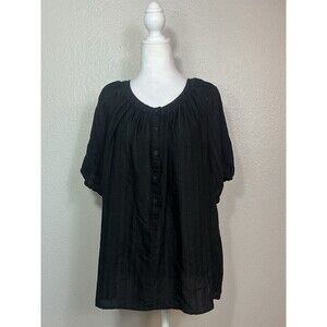 This Ann Taylor LOFT shirt dress is perfect for any bohemian-inspired outfit. The dress features a round neckline, three-quarter sleeves, and a short length that makes it suitable for travel or casual occasions. The black color adds a touch of elegance to the dress, and the A-line style flatters the body. This dress is a size Large.