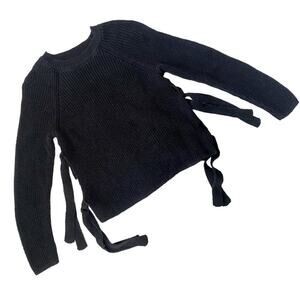 Ann Taylor LOFT Black Cable Knit Sweater Side Ties Women Size XS